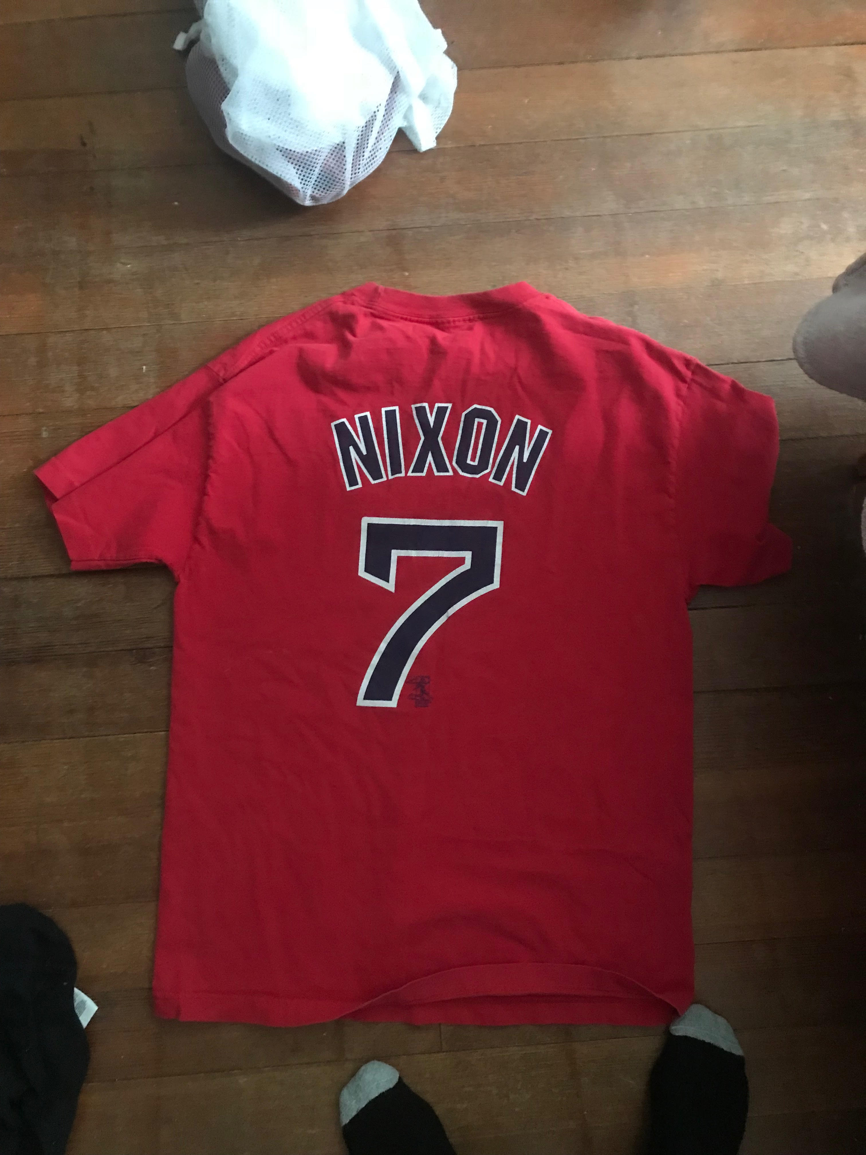 So my latest adventure took me to a thrift store on Seekonk MA. As a rifled through the store, I was elated when I stumbled upon a TROT NIXON player t. One of my favorite all-time players who I met a few years ago at McCoy Stadium. When I found this shirt I was overcome with joy and like most times when I come upon a great find at a thrift store, I snap chatted the find to my friends. The replies I got back were telling of the kind of player Trot was. “Original Dirt Dog’, “Grinder” and “Lunch Pale Player” were the responses I received. This shows the respect that Sox fans have for Trot. Fans here in Boston require one thing: hustle. That’s right, Trot made his career grinding out at-bats, running hard down the line and diving for balls in the outfield. Nothing symbolized the man’s hard work than his sweat-stained hat which he folded up in his pocket to keep safe. In honor of #7, I will proudly be wearing this shirt when I visit Fenway Park this year.